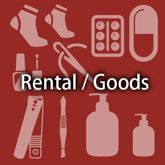 常備薬、爪切り・毛抜き、ソーイングセット、除光液などの日常品を無料貸出しております。また、急な宿泊時などに必要な、下着、ストッキング、靴下、コンタクト保存液などを 取り揃え、館内販売しています。